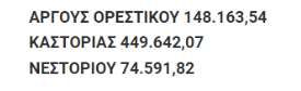 Οι δήμοι του νομού Καστοριάς λαμβάνουν: