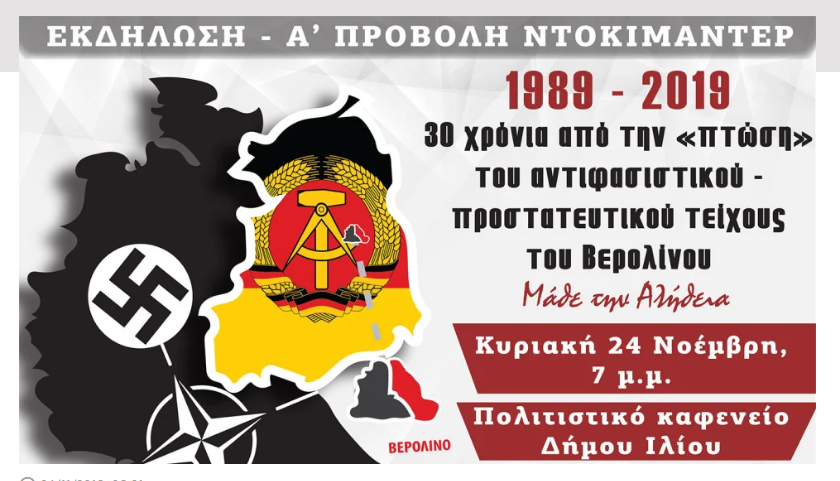 Το τείχος ήταν μια σύνθετη στρατιωτική κατασκευή η οποία περιείχε δύο τείχη ύψους 3,6 μέτρων με διάδρομο περιπολίας, 302 παρατηρητήρια και συστήματα συναγερμού, 14.000 φύλακες, 600 σκυλιά και καλωδιωτά πλέγματα. Και όλα αυτά για να προστατεύεται η “Λαϊκή σοσιαλιστική δημοκρατία της δικτατορίας του προλεταριάτου”. Γκρεμίστηκε σαν σήμερα στις 9.11.1989