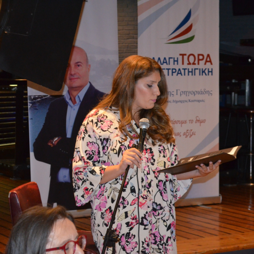 Κατά την έναρξη της εκδήλωσης, στο σύντομο χαιρετισμό του, ο Υποψήφιος Δήμαρχος Καστοριάς Γρηγόρης Γρηγοριάδης, αναφέρθηκε στην ικανότητα των γυναικών να επιλύουν σύνθετα προβλήματα, τόνισε ότι: «δεν υπάρχει καμία δουλειά που δεν μπορεί να κάνει μία γυναίκα» αφού πρώτα ανέφερε παραδείγματα επιτυχιών των γυναικών ακόμη και στις ένοπλες δυνάμεις. Έκλεισε τον χαιρετισμό του με τα λόγια της Γαλλίδας συγγραφέως Αναΐς Νιν:«Πόσο λάθος είναι για μια γυναίκα να περιμένει έναν άντρα να φτιάξει τον κόσμο που θέλει, αντί να τον δημιουργήσει μόνη της» και με την δέσμευση ότι, οι γυναίκες θα αναλάβουν καίριες θέσεις ευθύνης στον Νέο Δήμο Καστοριάς.