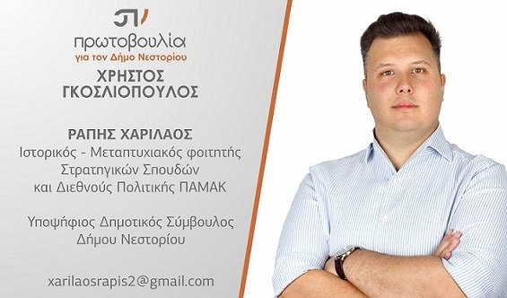 Υποψήφιος Δημοτικός Σύμβουλος Δήμου Νεστορίου, με το Συνδυασμό